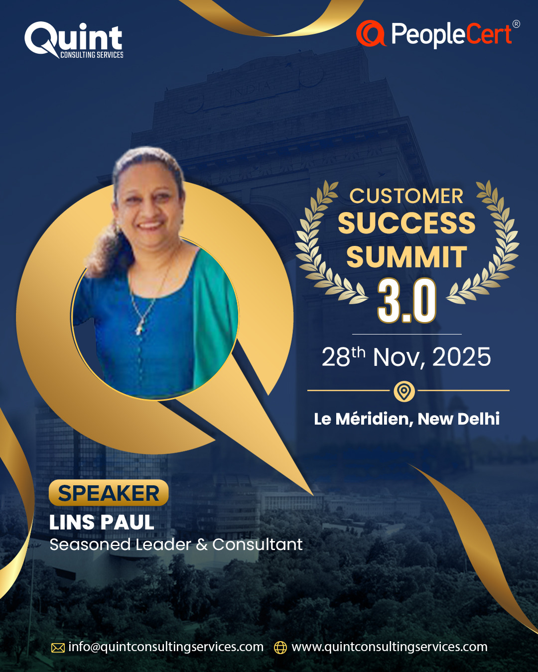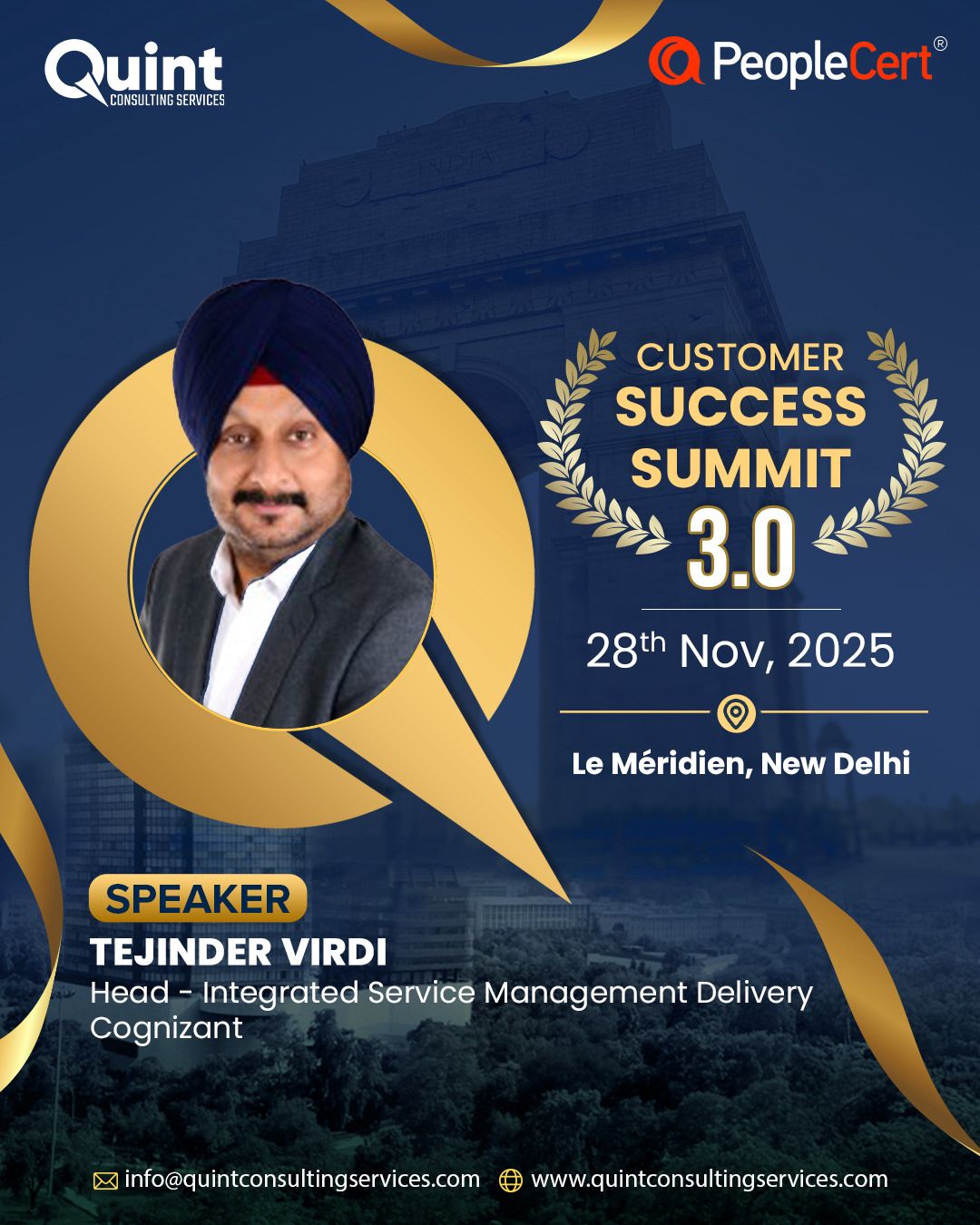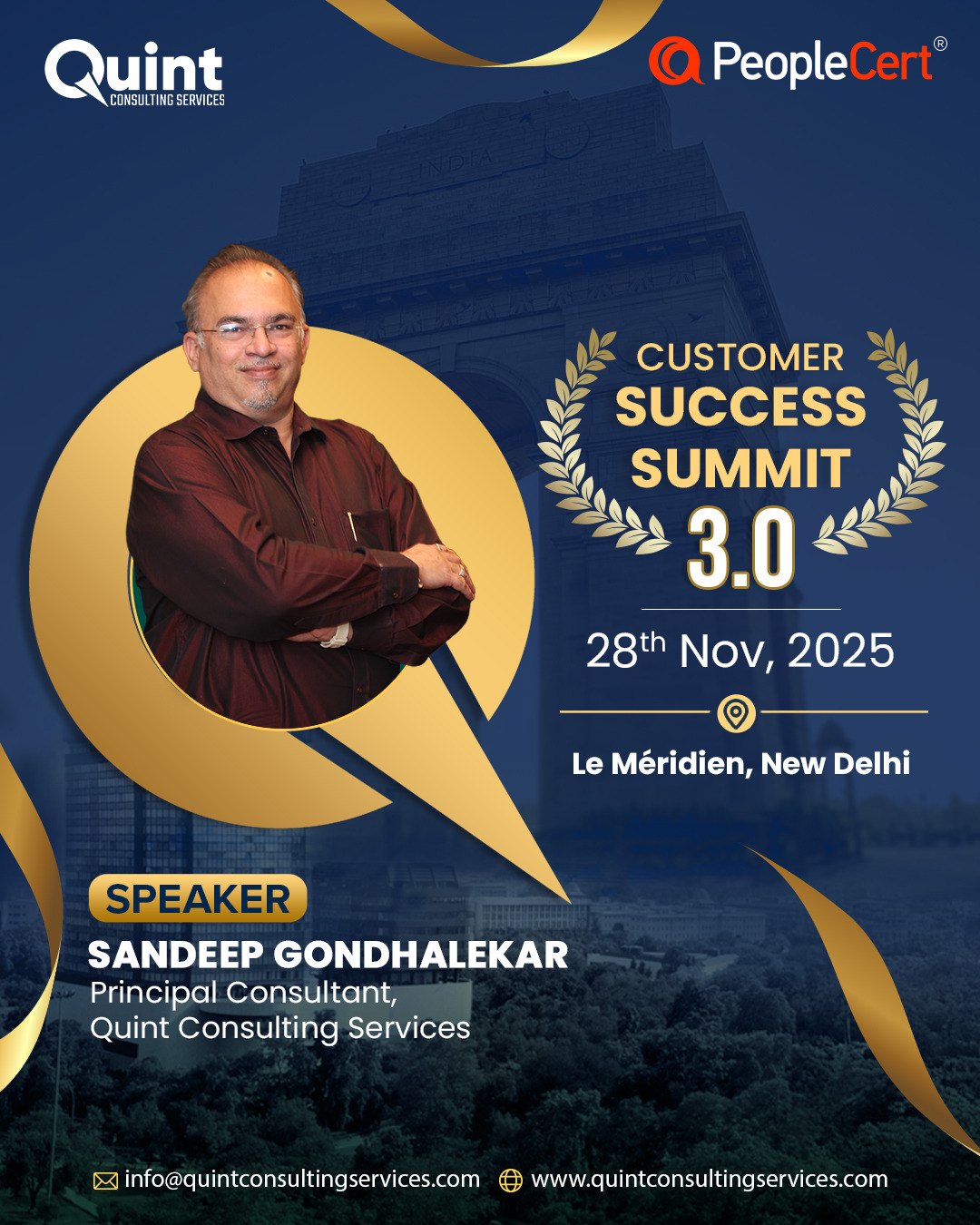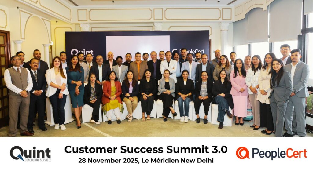 After the success of CSS 3.0 in Bangalore (22–23 August) and CSS 3.0 in Mumbai (26 September), we are thrilled to bring the Quint Customer Success Summit 3.0 – 2025 to Delhi on 28 November, in association with our global best practices partner, PeopleCert.