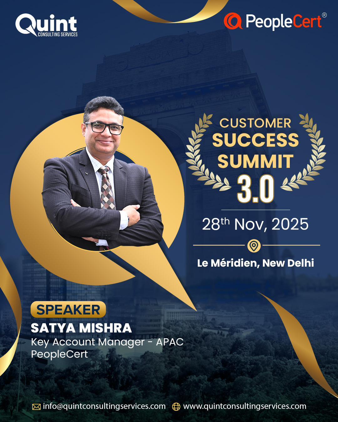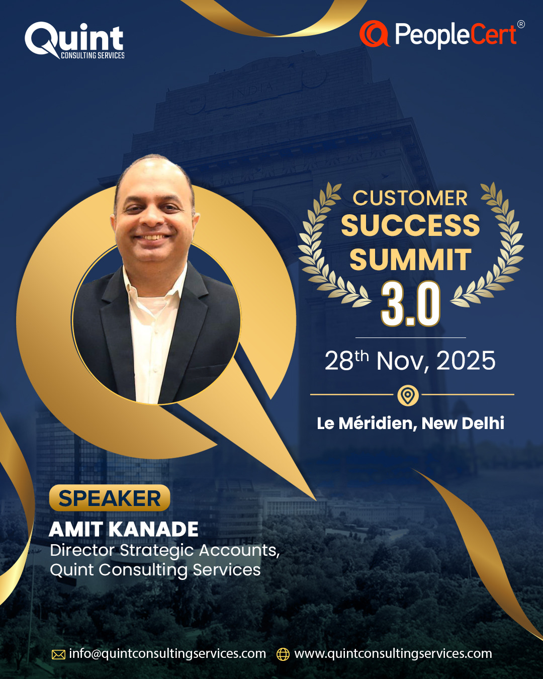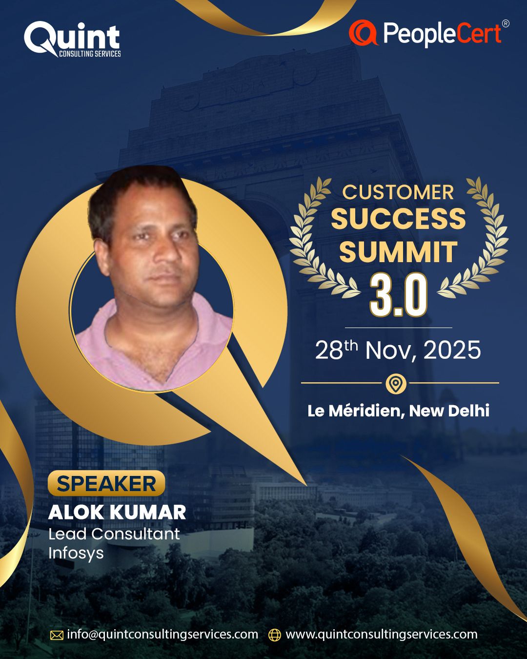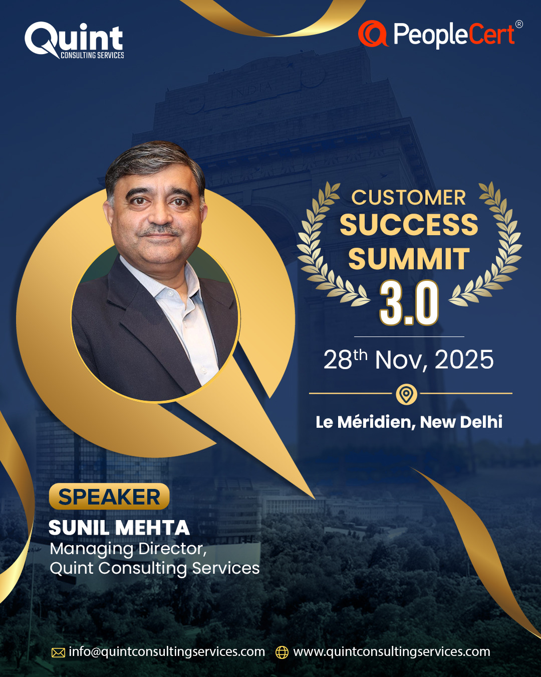 After the success of CSS 3.0 in Bangalore (22–23 August) and CSS 3.0 in Mumbai (26 September), we are thrilled to bring the Quint Customer Success Summit 3.0 – 2025 to Delhi on 28 November, in association with our global best practices partner, PeopleCert.