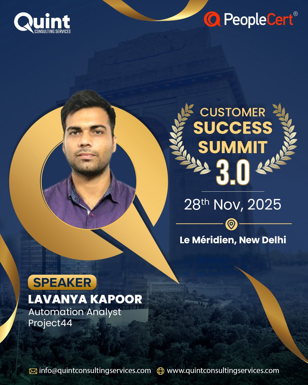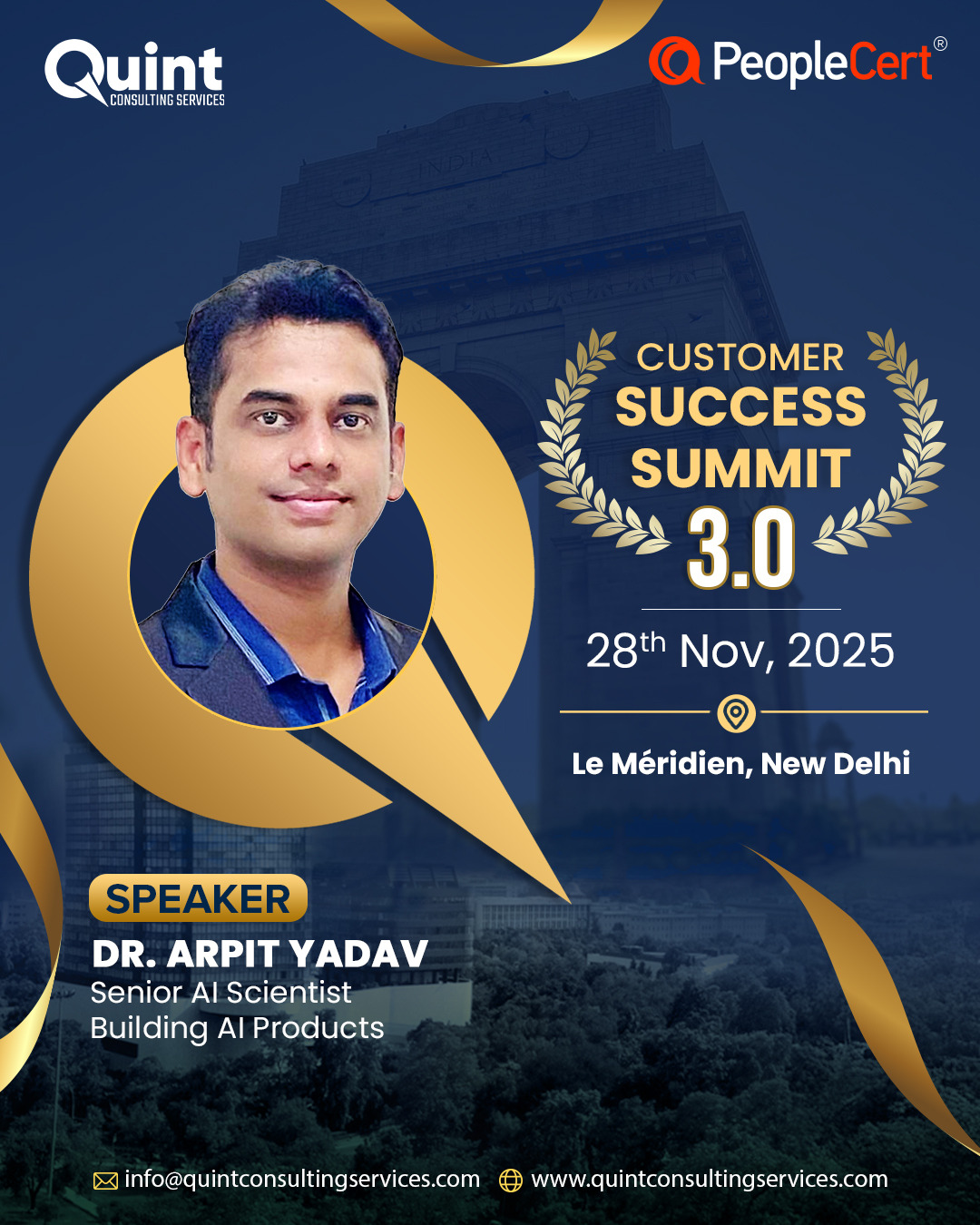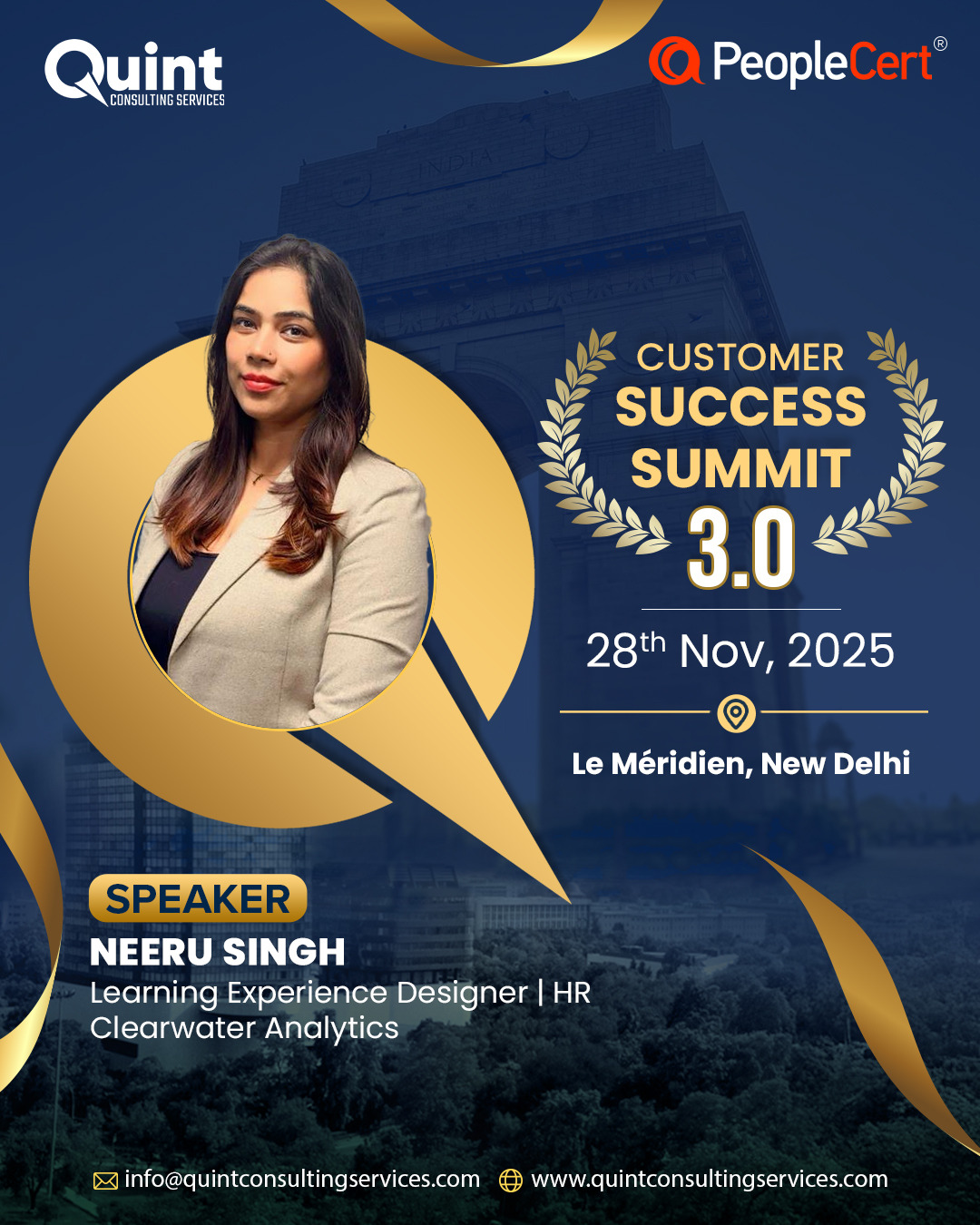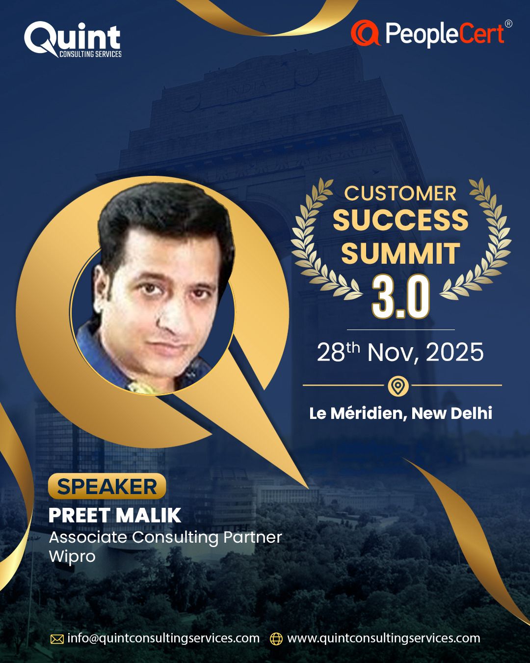 After the success of CSS 3.0 in Bangalore (22–23 August) and CSS 3.0 in Mumbai (26 September), we are thrilled to bring the Quint Customer Success Summit 3.0 – 2025 to Delhi on 28 November, in association with our global best practices partner, PeopleCert.
